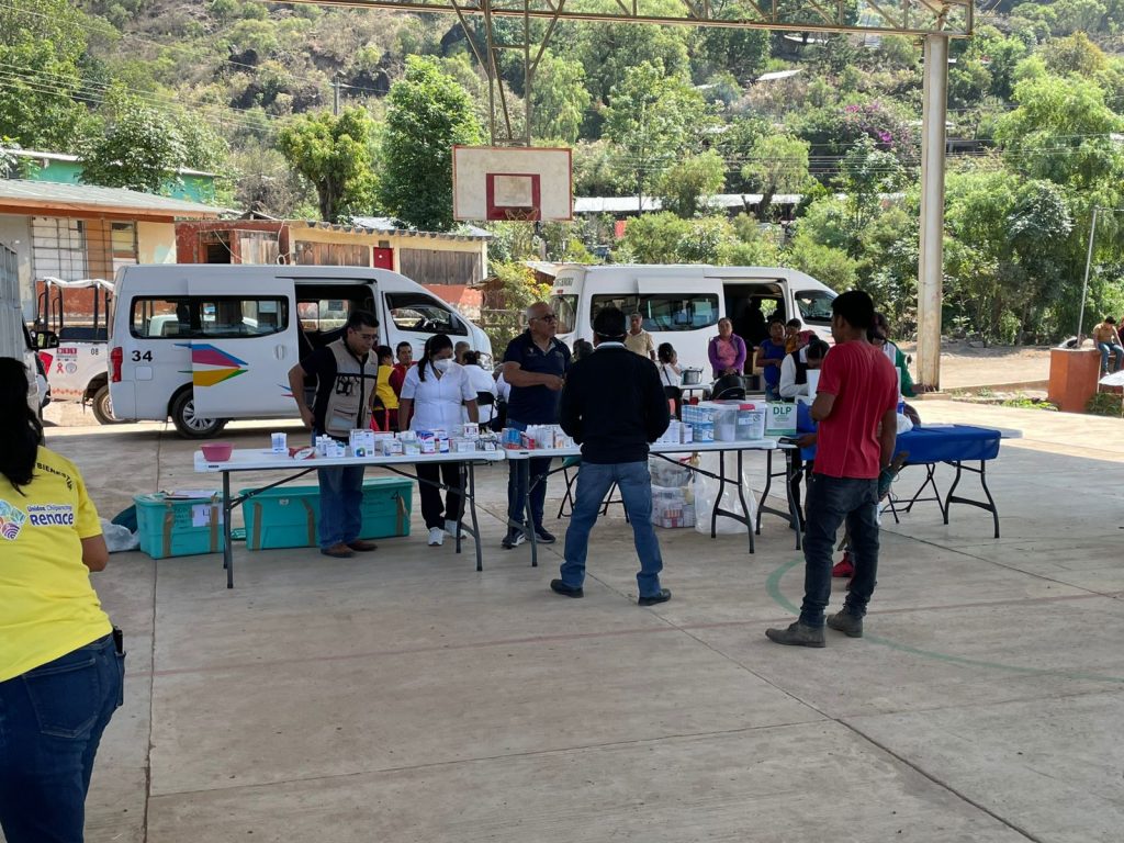 La dependencia estatal informó que la intervención se enfocó servicios de consulta médica, esquemas de vacunación, vigilancia epidemiológica activa y entrega de medicamentos preventivos en beneficio de las y los habitantes de esta localidad.
