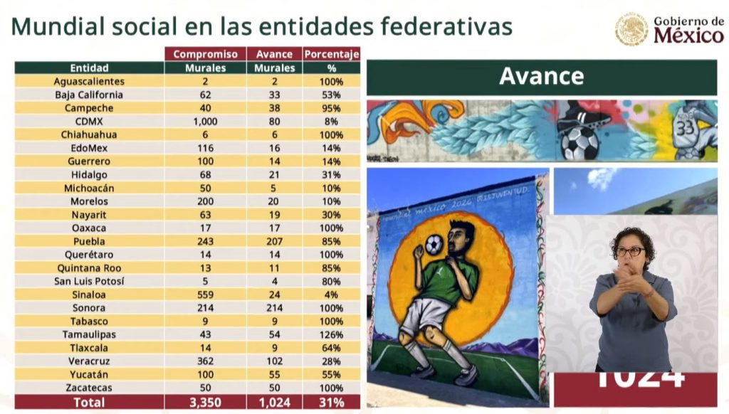 En el rubro cultural de los 100 murales comprometidos como parte del Mundial Social, Guerrero ha concretado 14, es decir, un 14 por ciento de avance.